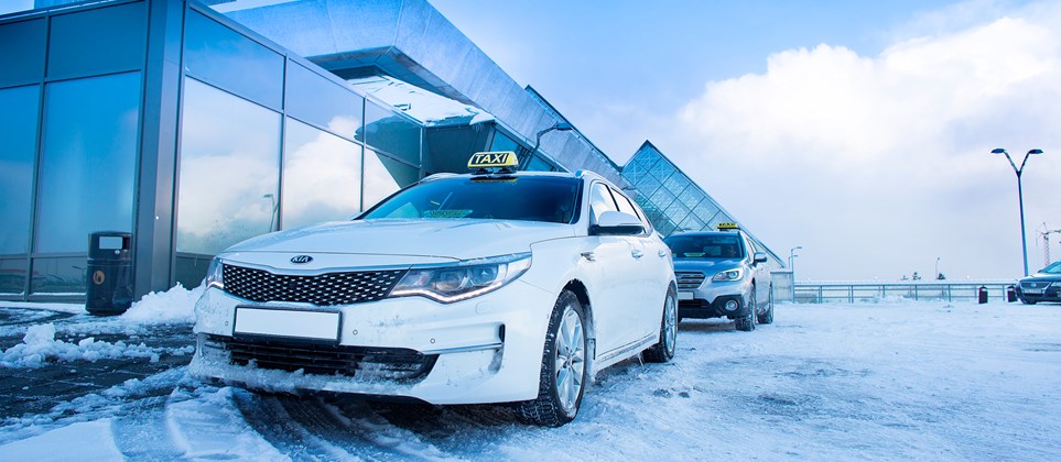 Leigubílar eru til taks fyrir utan flugstöðina í tengslum við flug