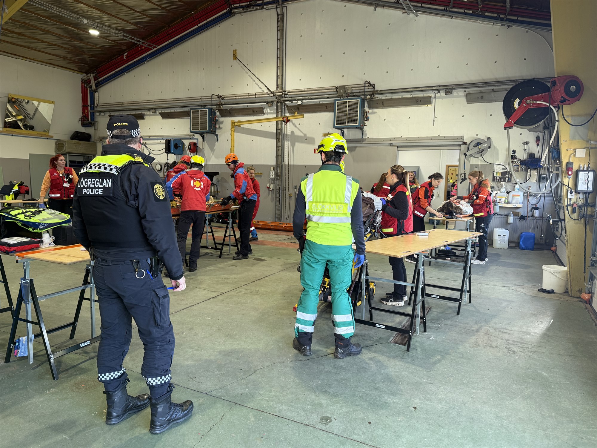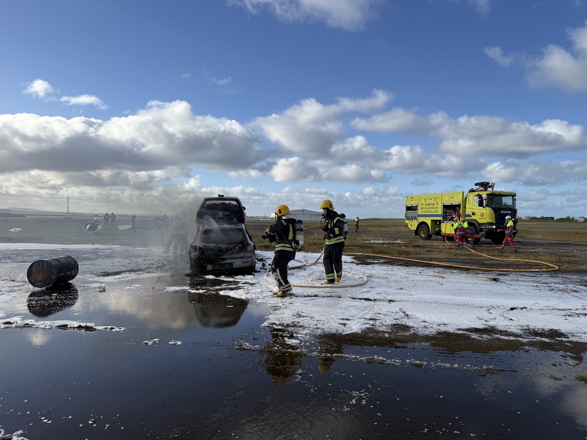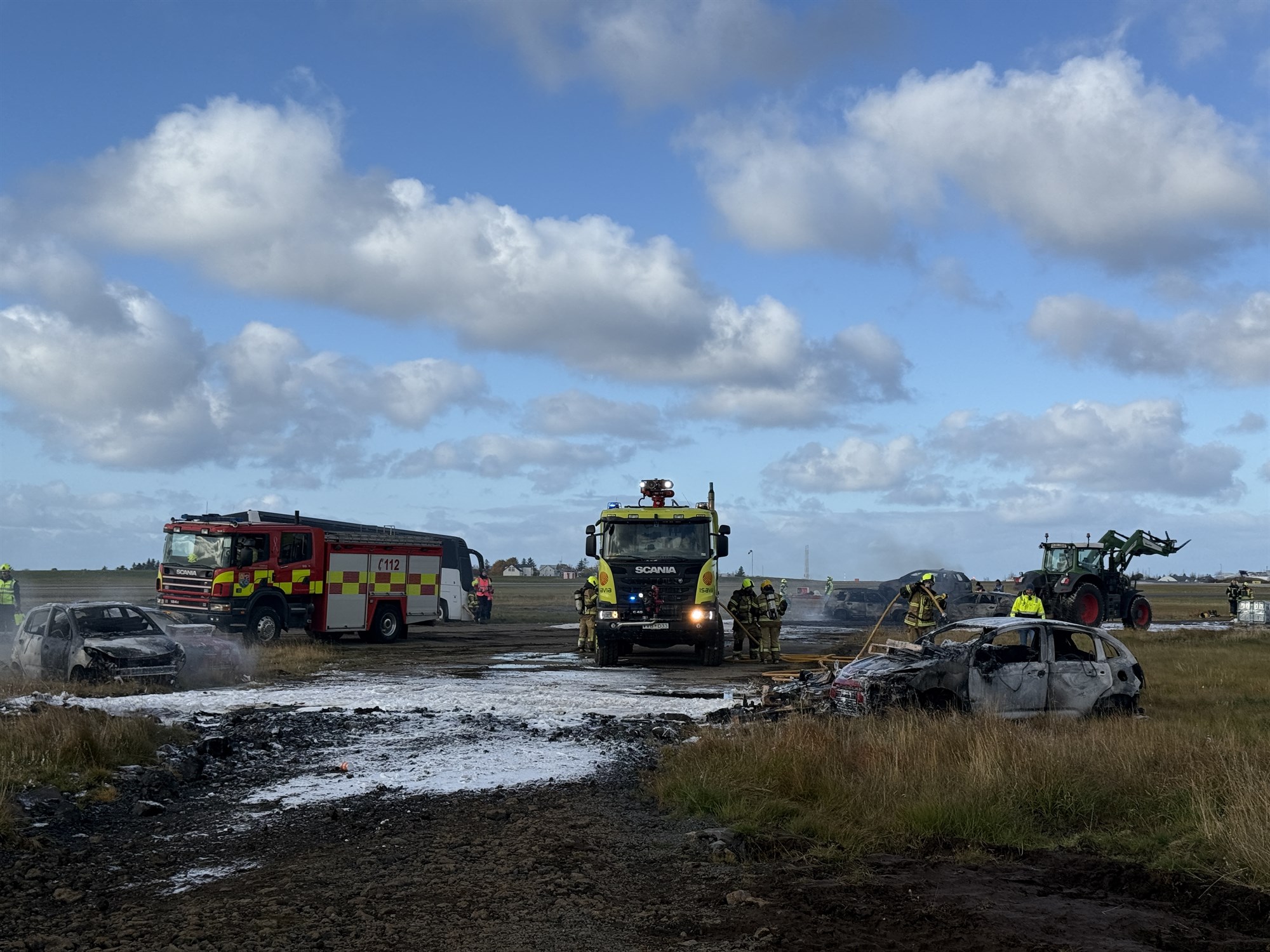 Slysavettvangur var settur upp þannig að braki var komið fyrir á hluta vallarsvæðisins. Eldur var kveiktur í bílhræjum til að skapa sem raunverulegastar aðstæður.